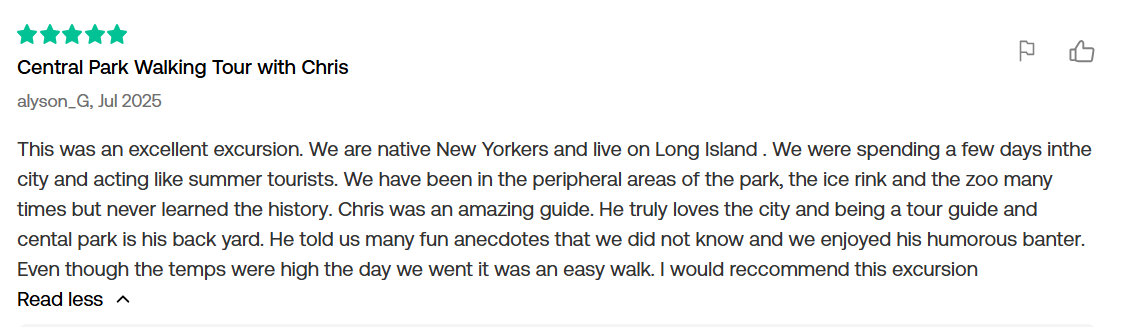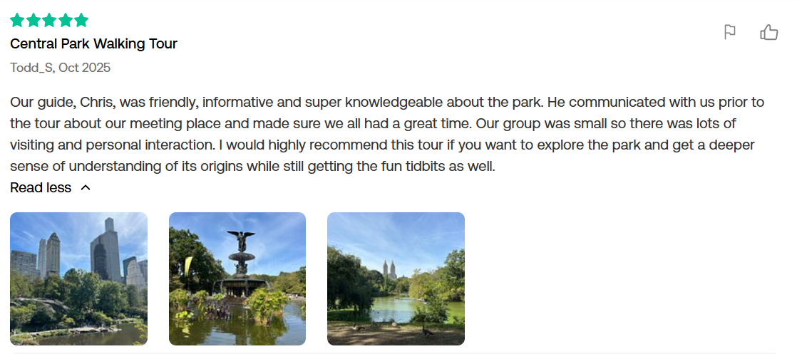 Discover Central Park's most beautiful vistas, legendary stories, and hidden movie locations. Our small-group tours are led by NYC's most seasoned experts, ensuring a personal and unforgettable journey into the heart of the city's beloved treasure.